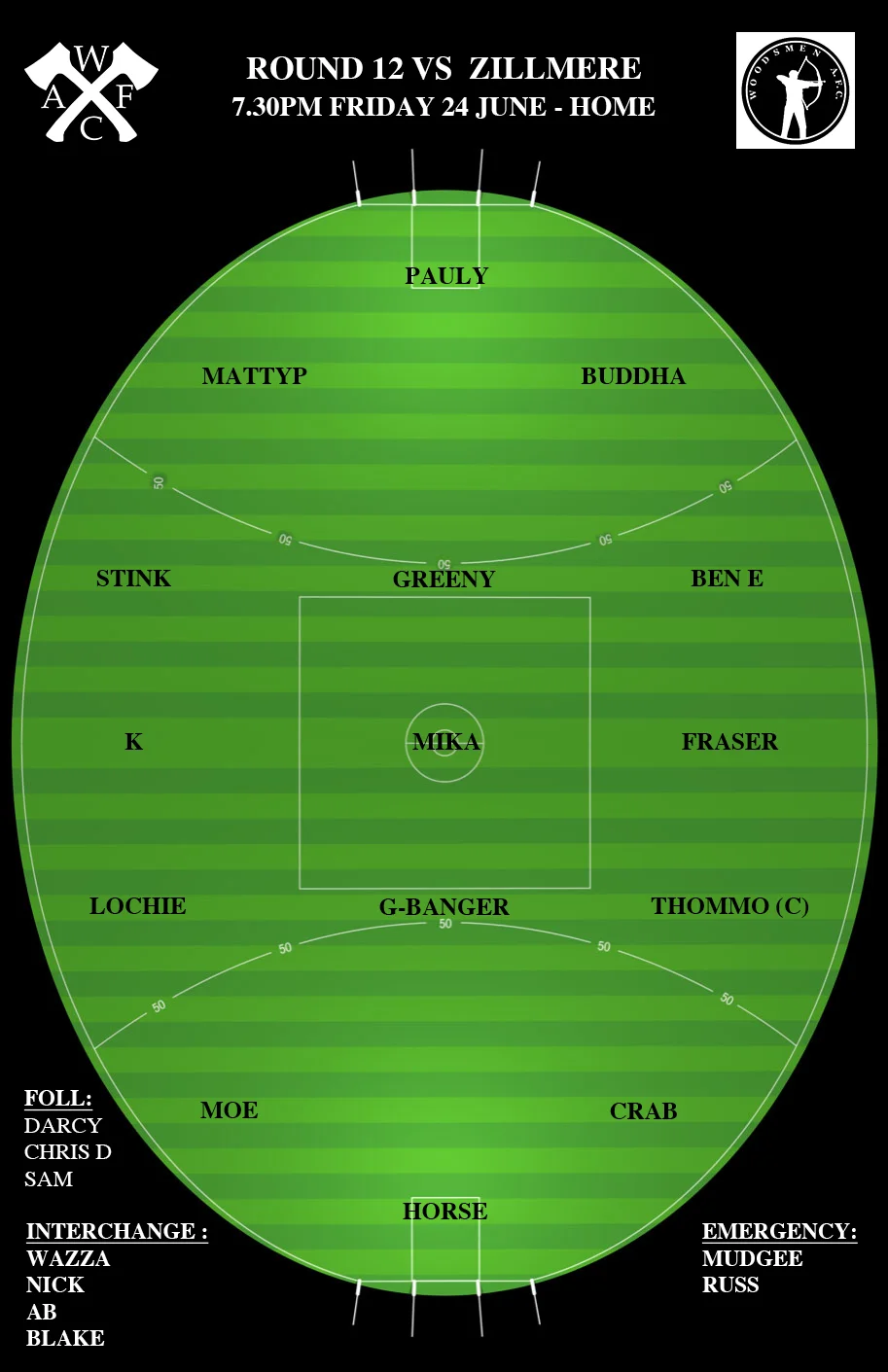 The Mighty Woodsmen are at home tonight in what promises to be a fiercely contested match against ladder leaders, the Zillmere Eagles.